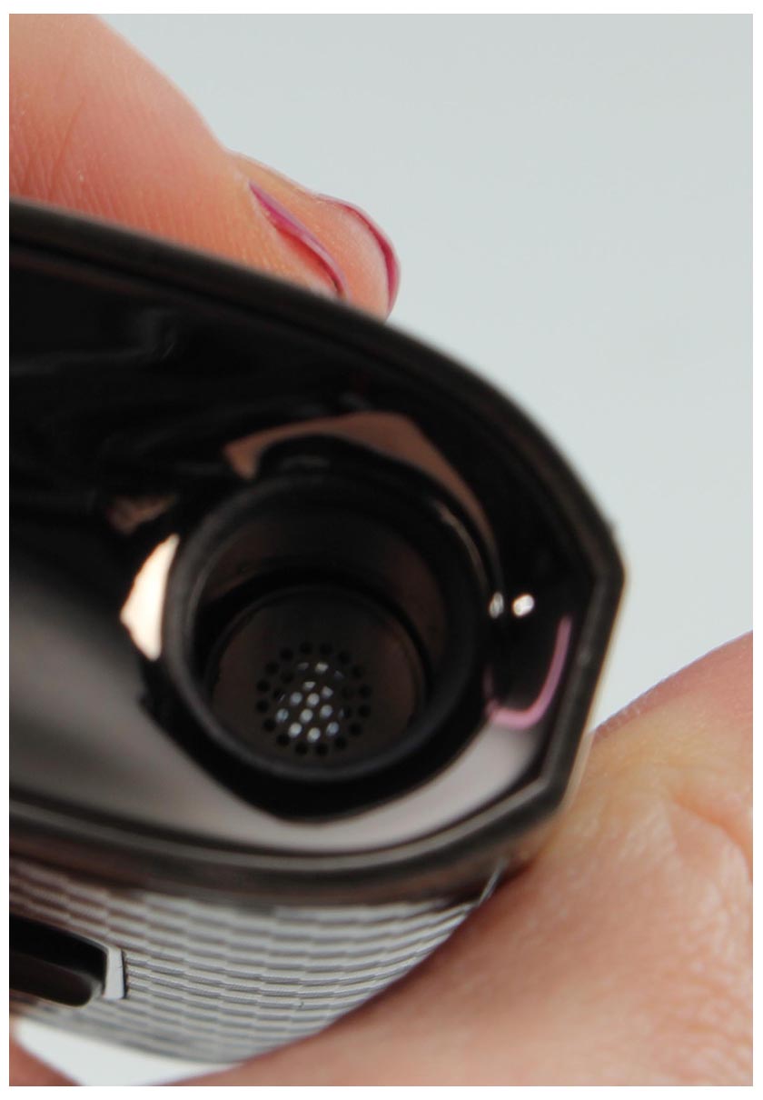 This starts with the filling of the herbs: The area around the heating chamber made of black ceramic is bevelled, so that you can easily crumble the herbs on it and fill them in. For the vaporization of extracts such as wax or oil, there is a capsule made of stainless steel which is filled and inserted into the heating chamber. The black ceramic keeps the incoming heated air flow well, but isolated from the technology, which guarantees an even and constant heating. In this way, the herbs and extracts are also vaporised particularly evenly at a constant temperature.